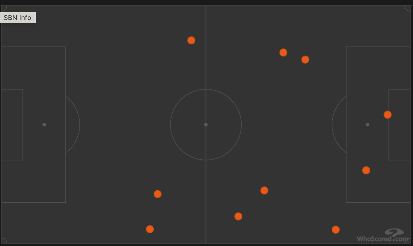 Speaking of turnovers in the opposing end, LAFC have been one of the top defensive teams ever since Steve Cherundolo took over last year. Despite having played just three matches, they still rank eighth in forcing high turnovers. Keeping in mind that I’m not using exactly overlapping datasets, I don’t think the LAFC forced any such turnovers against the Sounders. According to the WhoScored data, they only forced three turnovers in the Sounders’ end, and all of them were near midfield.