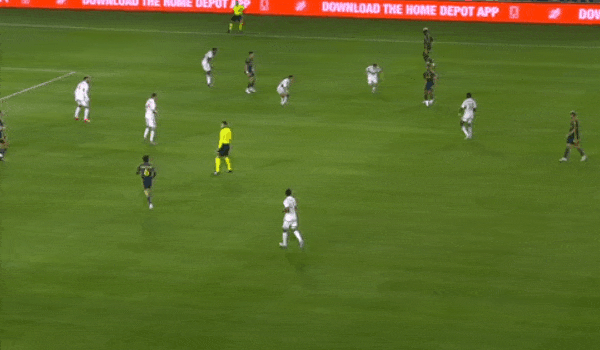 For the Galaxy, two issues stand out. First, their wing play has been disappointing. None of their healthy wingers and fullbacks take advantage of wide areas in the final third or work the ball to the end line for cutback passes. Instead, they rely on short passing through the crowded vertical lanes between the wing and the middle — the half spaces: