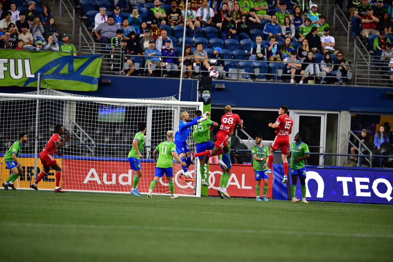 Prior to the red card there was also some encouraging offensive play. In addition to Morris’ goal — which came on a well-worked sequence that featured a quality pass from Albert Rusnák to put Léo Chú into space and then a perfect cross from Chú — the Sounders had numerous opportunities to add a second goal. Chú was involved in many of those, setting up Dylan Teves for one and positioning himself for a potential tap-in at the back post if Héber had let a Rusnák cross go through the box.