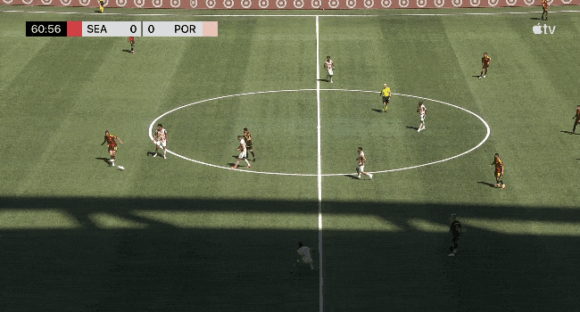 Already listless movement off the ball was not supplemented with attacking numbers. João Paulo could only shrug his shoulders after this sequence where the static Sounders in front of him are encircled by defenders and no supporting run arrives from the right side to attack the open space:
