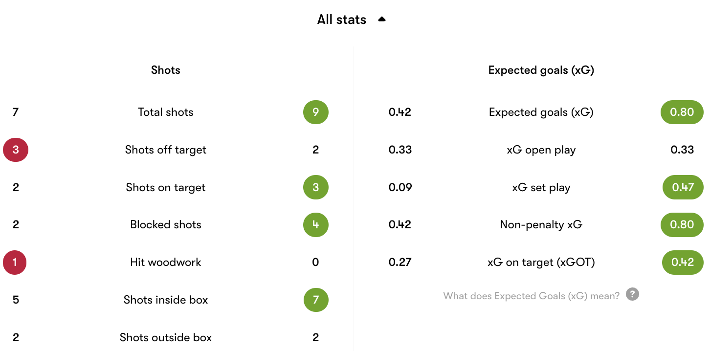 Shots on goal: 2