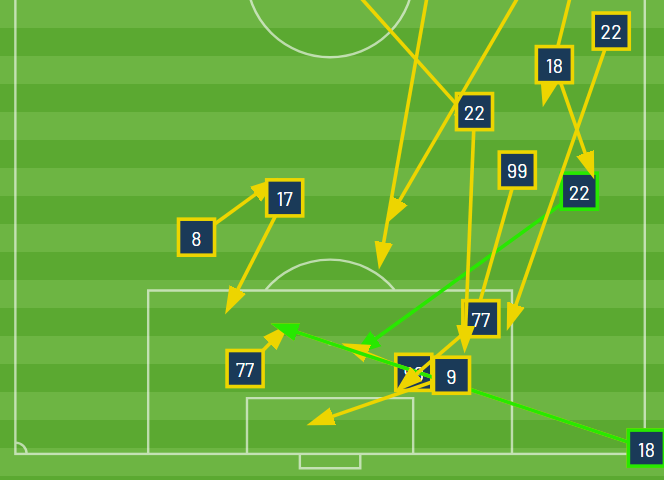 The Red Stars put a lot of bodies in their box when defending, which can leave the wide spaces open. Below is a look at Kansas City's successful crosses, set-piece passes, key passes, and assists against Chicago last weekend. Several came from wide positions or the corner of the penalty box.