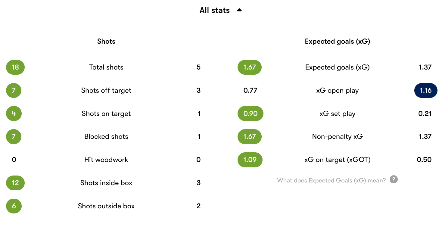 Shots on goal: 1