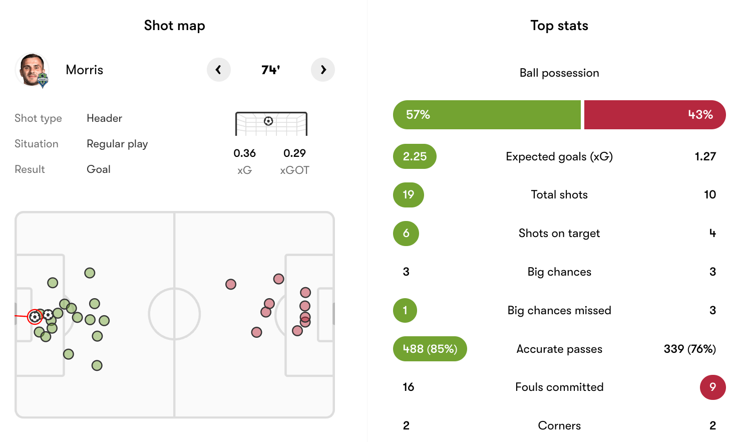 SEA – Jordan Morris (Nouhou, Nico Lodeiro) 74’
