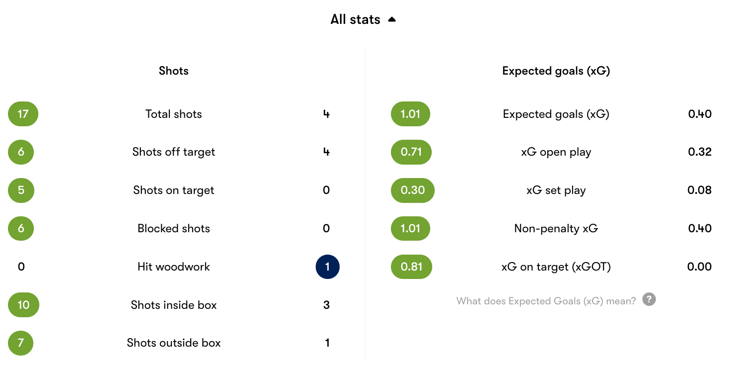 Shots on goal: 5