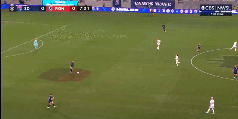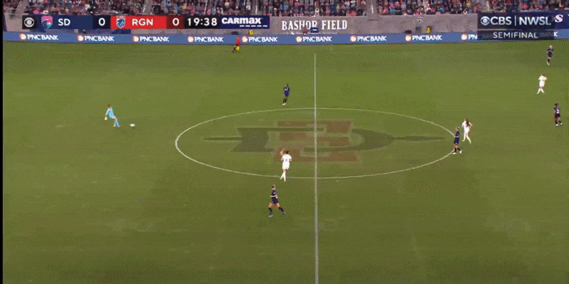 As a result of the Reign's organization, they held San Diego to just two shots in the first half – and neither was on target. The Wave managed just one through ball as well. In addition to not slipping behind the Reign defense, they weren't even pushing the line: San Diego, who led the league in the category heading into the match, didn't have a single offside call.