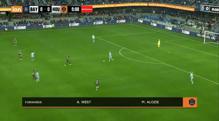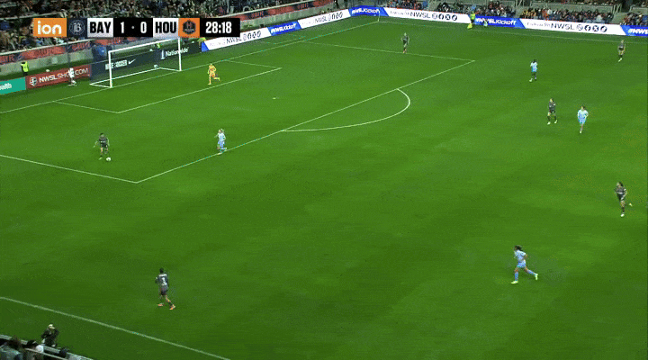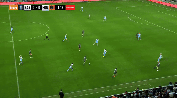 Their midfield trio consists of a single pivot holding midfielder and two No. 8s who take turns dropping or making runs into the attack. Relying on a single player deep in the midfield can leave Bay FC vulnerable to counter attacks.