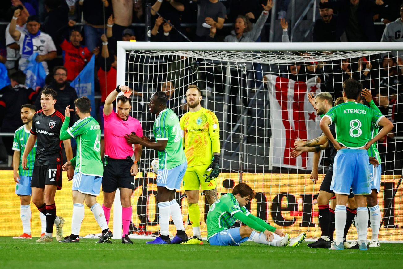 A Sisyphean endeavor: This game feels a little like the season so far in microcosm. The inability to turn chances into goals leaves the Sounders in a tough spot, but largely unforced errors turn a difficult task into an impossible one. No matter how well the team does to create chances and find a goal here and there, plays like the one that saw Frei sent off and gave D.C. a penalty or repeatedly conceding set piece opportunities from dangerous positions to a team with Christian Benteke are ultimately going to guarantee that boulder you just pushed up the mountain is going to roll back down to the bottom. There are positives the team can take from this one, and while the penalty and red card were pretty clearly correct the referee left folks with plenty of reasons for complaint, but none of those things add to your point total.