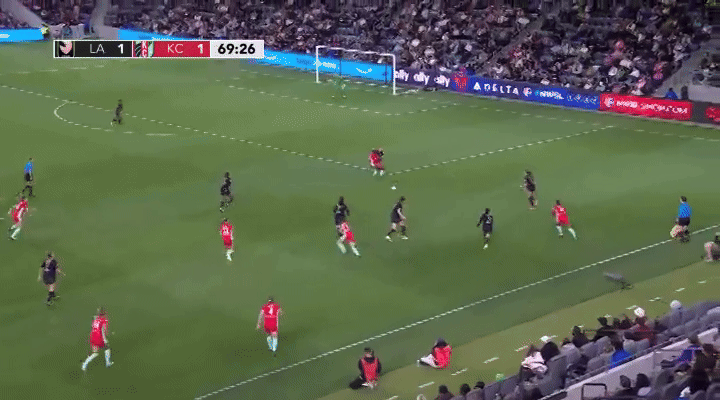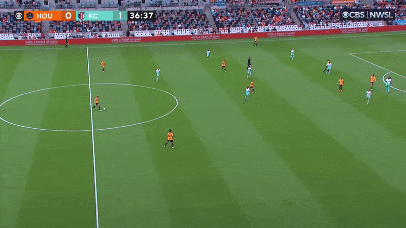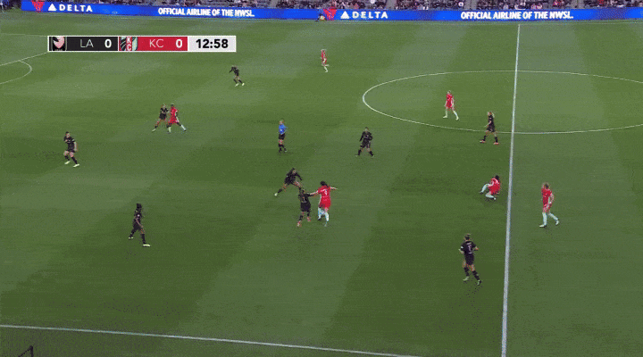 While they ultimately lost the match, Angel City rolled out an unexpected three-back formation against the Current a couple of weeks ago that helped clog up the middle and frustrated the Current. Look at how many Angel City players cover the center of the box in the below play. This forced the Current to funnel the ball out wide, where Angel City was set up to defend well.