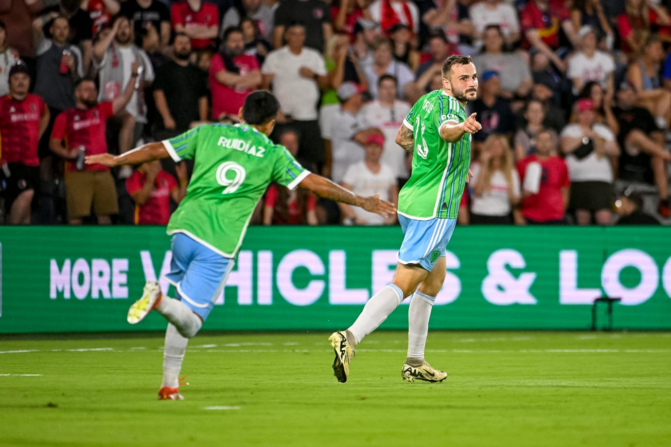 It was more of the same against St. Louis City on Saturday. The Sounders were credited with 52% possession, although just 40% of their passes were in St. Louis’ half and they only attempted to play two passes into the penalty area. City, meanwhile, peppered the Sounders with 22 shots, with 15 of them coming from inside the penalty area. Especially during the final 15-20 minutes, the Sounders were forced to defend much deeper than they’d liked as they struggled to string passes together.