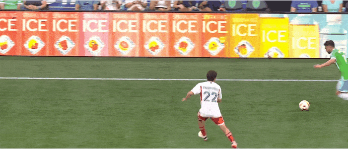 Their build-up becomes more strained with Ruidíaz at forward. Unable to launch the ball centrally and retain possession with Morris, Seattle tried to send balls into tight windows on the wings, which the Revs found easier to defend: