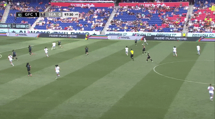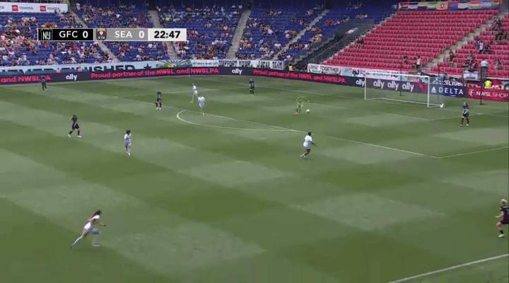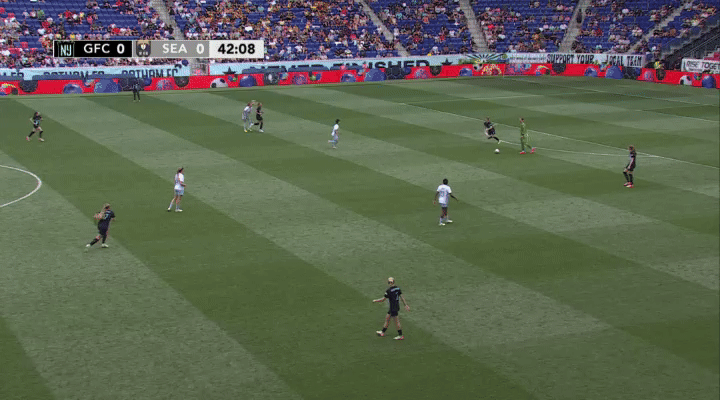 The Reign's defensive shape and pressure clearly rattled Gotham, and they nearly gifted the Reign a goal on a couple of occasions. It's a bummer Ji So-yun couldn't take advantage of this one just before half.