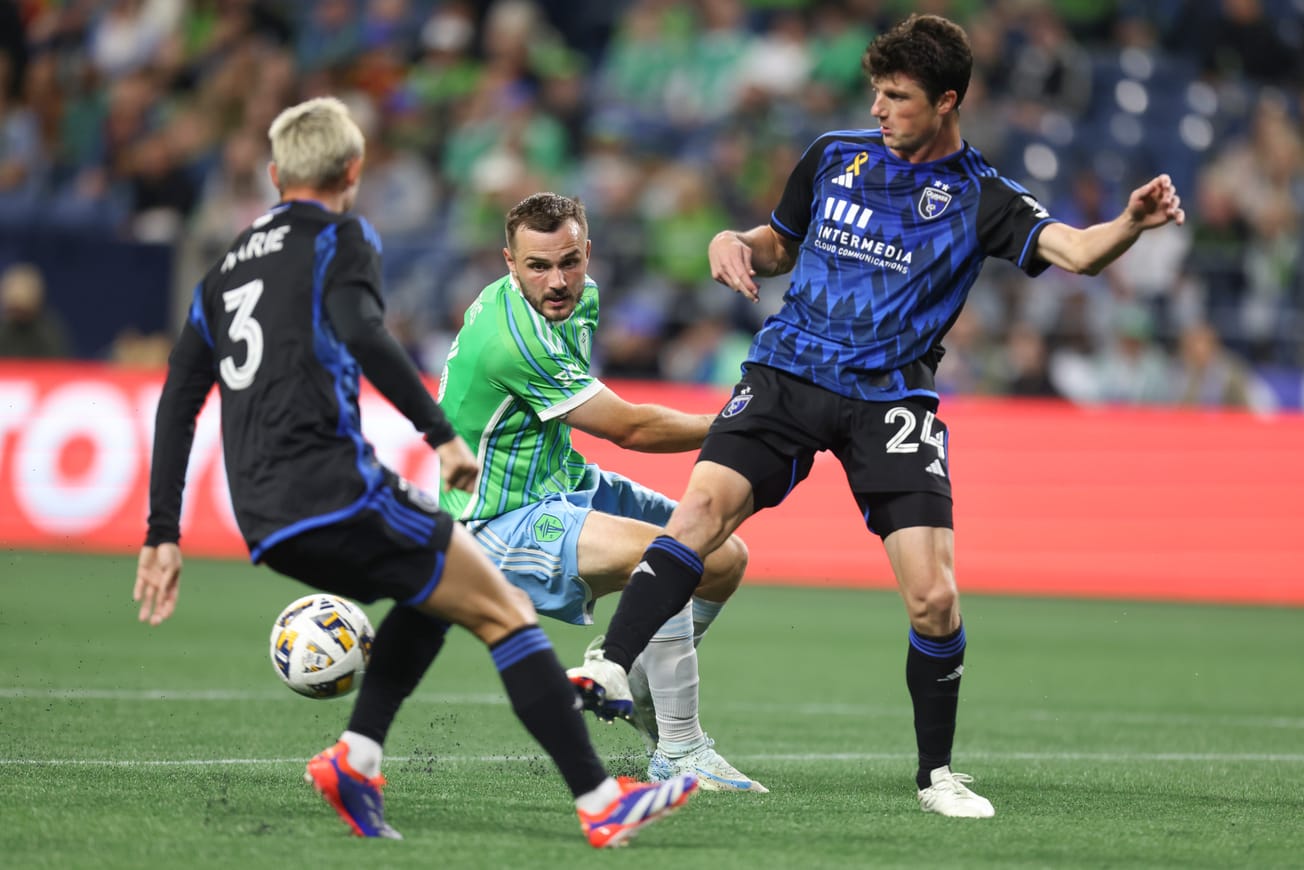That bit them on the decisive play, when the Earthquakes executed a pretty standard attacking pattern on which a host of Sounders veterans were just slow to react. Cristian Roldan was a step behind Jeremy Ebobisse on the cross; both centerbacks Jackson Ragen and Yeimar Gomez-Andrade were slow to fill the passing lane; and Alex Roldan never fully tracked Marie, who was able to get goal side on his run.