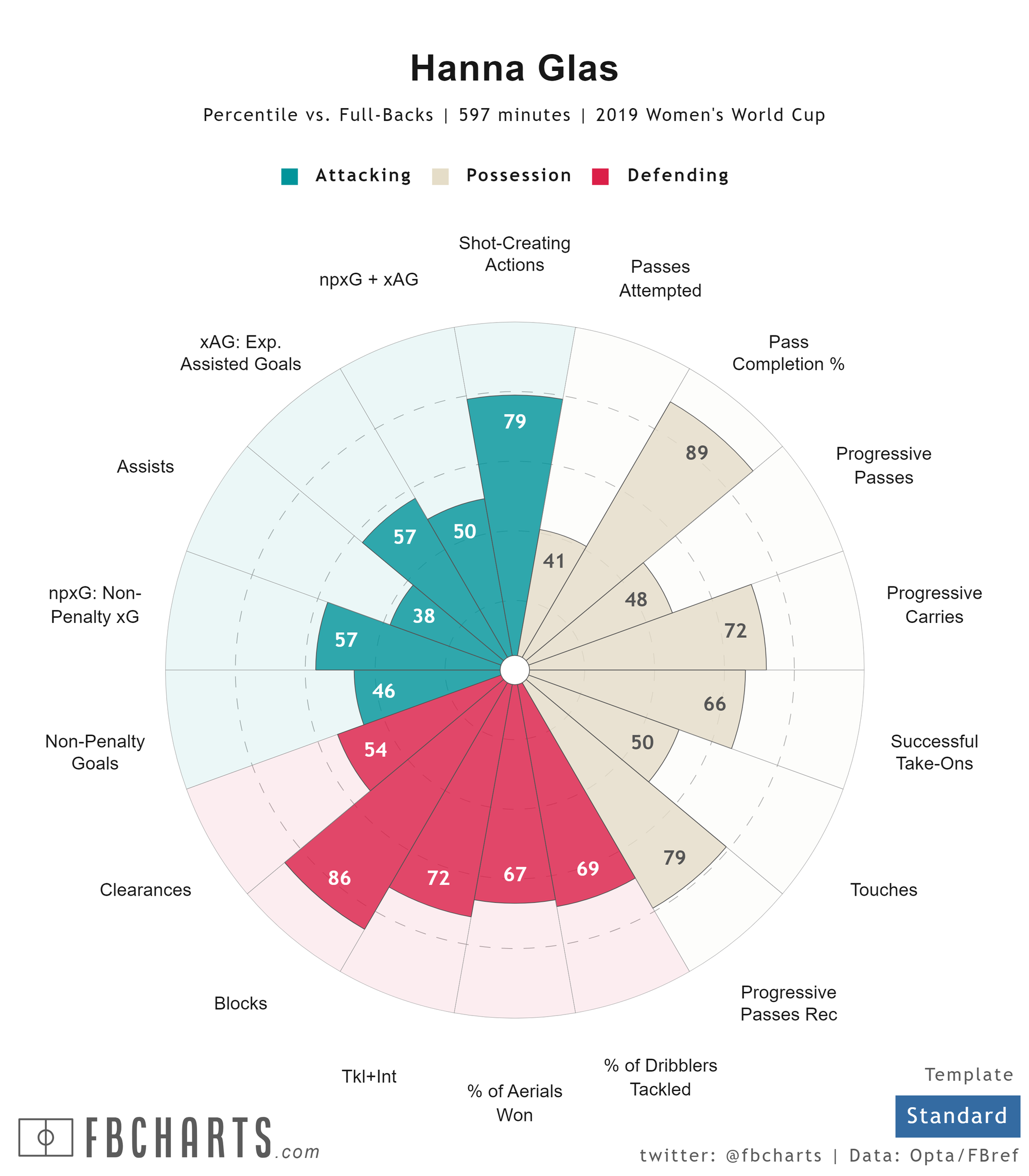 While her four ACL tears have caused setbacks, Glas has been a mainstay on the Swedish national team. She began playing internationally with Sweden's U-17 team in 2009, helped Sweden win the UEFA Women’s U-19 Championship in 2012, and made her senior team debut in 2017. She has 60 senior caps and played a key role in Sweden's third-place finish in the 2019 Women's World Cup.