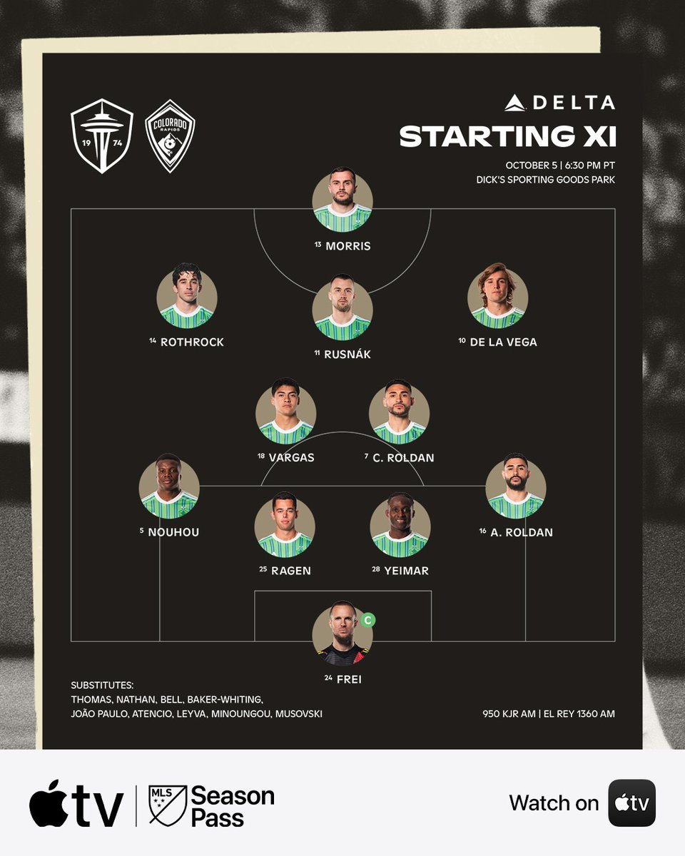 LINEUPS: The Sounders made just one change, again, swapping Pedro de la Vega and Georgi Minoungou, again. João Paulo also made the bench for the first time in six games.
