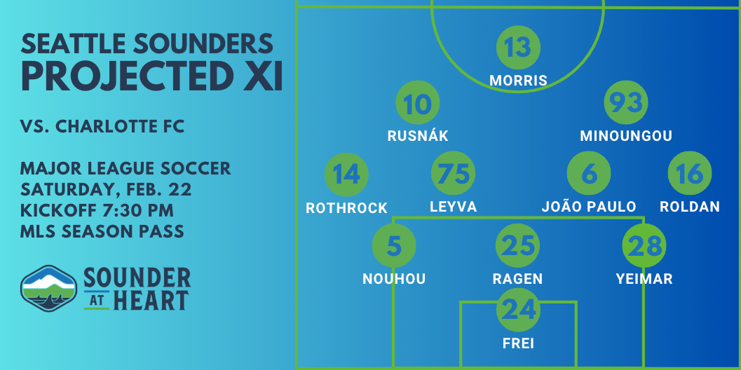 Coming off a 3-1 win over Antigua GFC in Concacaf Champions Cup on Wednesday, the Seattle Sounders open the MLS regular season at home against Charlotte FC. The Sounders will likely need to do some rotation, but are otherwise pretty much fully healthy.
