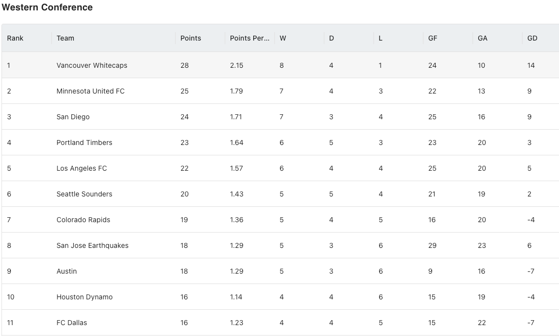- 12: FC Dallas is tied for the most road points in the Western Conference with 12, going 3-1-3. Their only road loss, though, was a doozy as they fell 5-0 to San Diego FC.