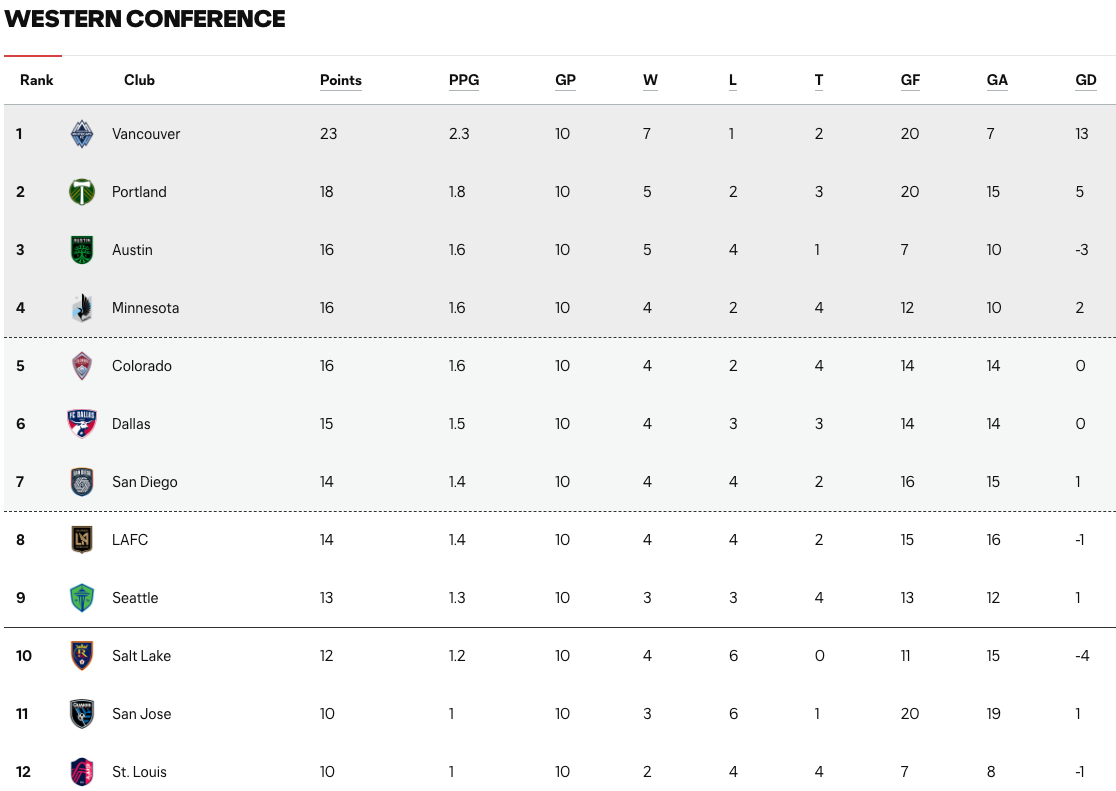 - 15: There have been just 15 goals scored by both teams in St. Louis City’s 10 matches this season, that’s the second fewest of any team. Perhaps unsurprisingly, they are also tied for the league lead with five shutouts. Of course, only one team has only been shutout more than them, either.