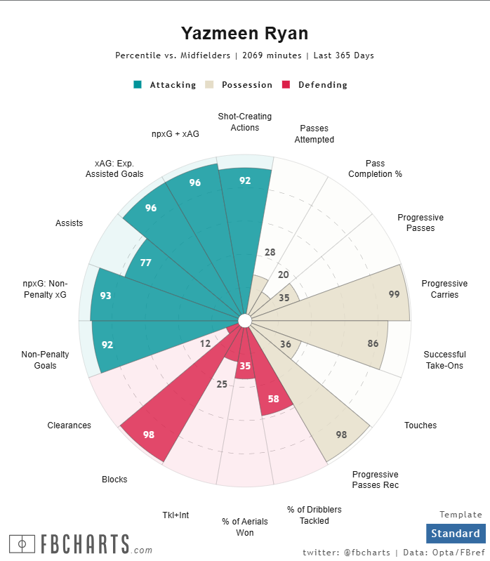 Yazmeen Ryan: A known quantity, Ryan was one of the most dangerous midfielders in the league last year, amongst NWSL's leaders in key passes, completed passes into the penalty area, progressive carries, expected assisted goals, and goal-creating actions. So far in 2025, she hasn't had as much luck with the final product, but her quality of play maintains the bite, and she leads the entire field in xAG. She provides an incisiveness that last year's Dash often lacked and can quickly swing a game with her passing and skill on the ball.
