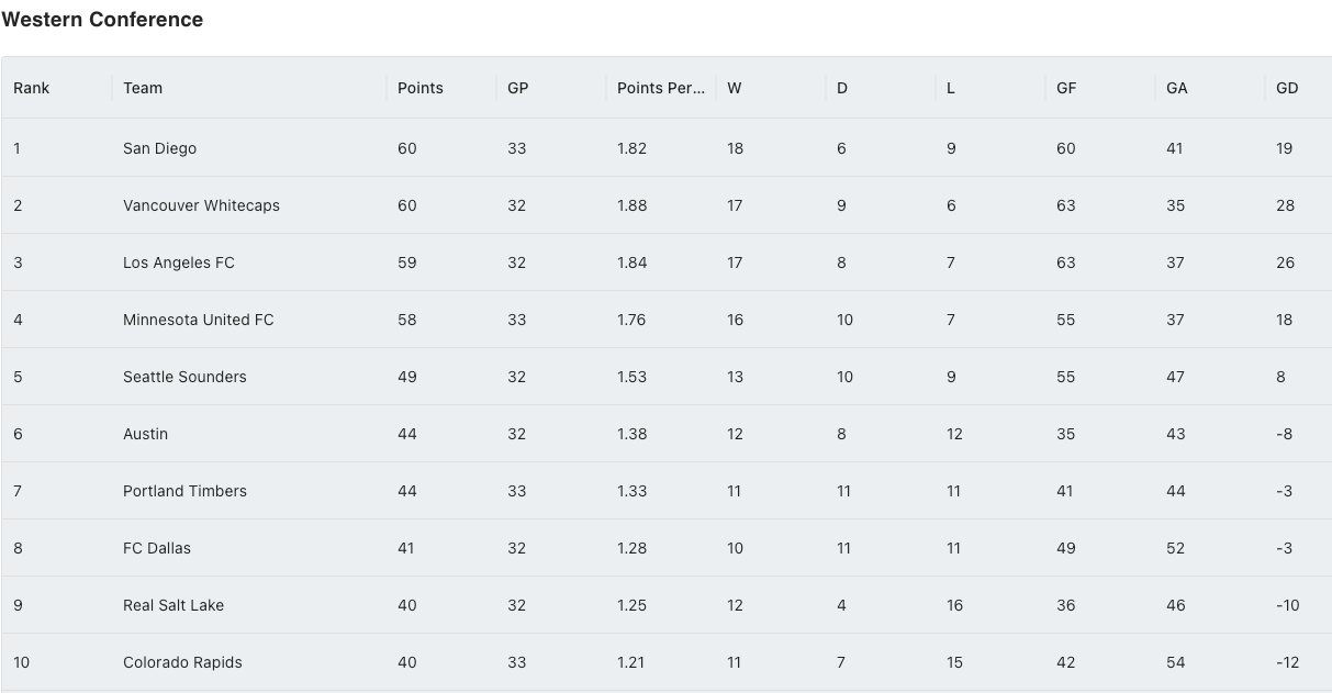 13: RSL aren't the worst road team in the league, but they are the lowest scoring one in the Western Conference with just 13 goals. That's three fewer than anyone else in the West and more than just two other teams in the whole league.