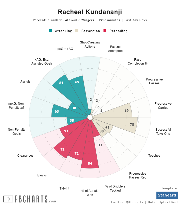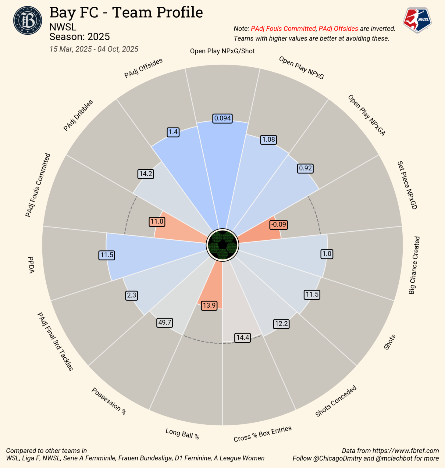 Racheal Kundananji: Arguably the other most important player for Bay this season, their offense can frequently be summed up as get the ball to Racheal and hope she does the spectacular. While injuries, rotations, and bad results have forced them to try other looks from time to time, Kundananji remains about their only consistent source of offense. A natural winger who can play centrally when the game calls for it, Kundananji is quick and technically gifted, clever on the dribble, and dynamic in pressuring and harassing back lines. While she's only scored four times this season, she's one of the league leaders in expected assists and one of the best defensive wingers in the game today.