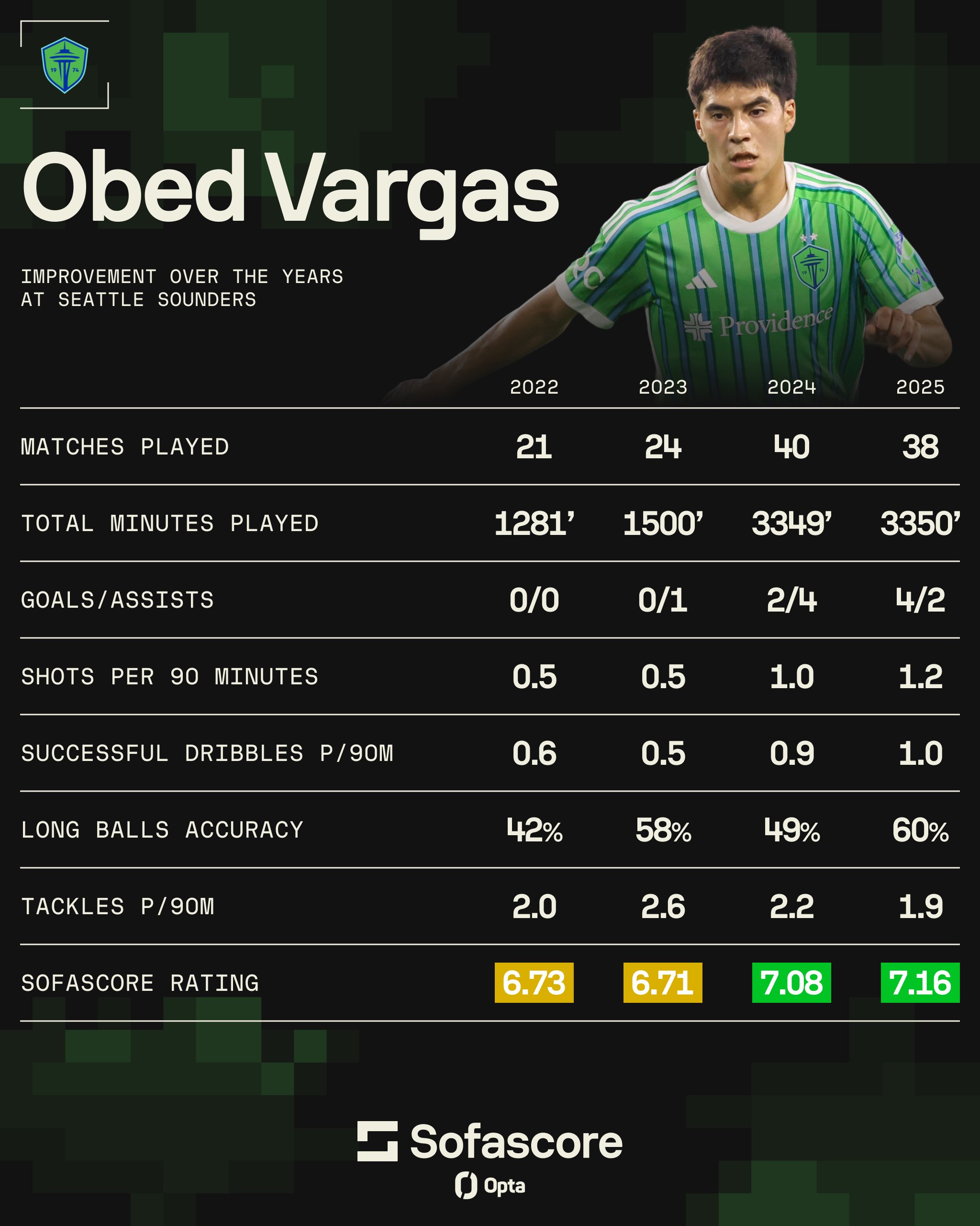 Vargas’ journey from Anchorage, Alaska to Seattle has been well-documented, but as the Sounders prepare for the 2025 playoffs with the midfielder as a key component of their MLS Cup hopes it still warrants some repeating if only to highlight and contextualize his explosive growth.