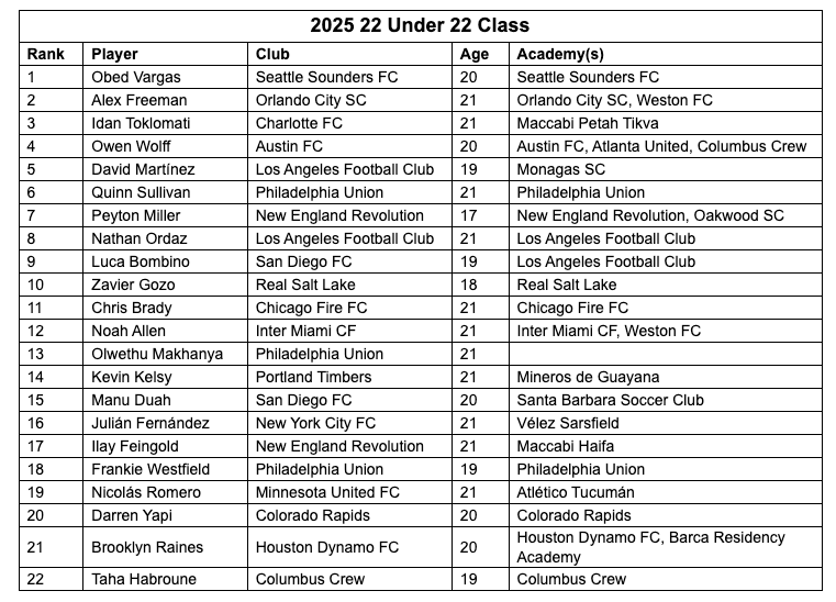 At its core, MLS’s annual “22-Under-22” list is more of a marketing exercise than a formal award. But it is a good-faith exercise by the league’s CSO’s, some of its top editorial talent and select journalists to identify the league’s best young players.