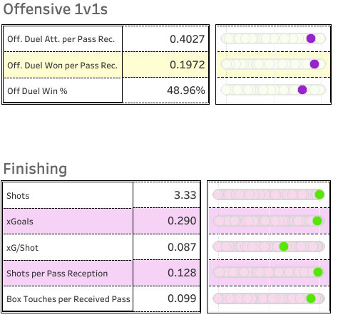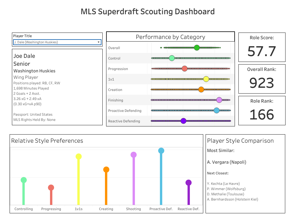 According to American Soccer Analysis’ model, Dale grades out as a good shooter with some quality 1v1 abilities. As a junior, he’ll also have the opportunity to return to UW for another year with the Sounders retaining his MLS rights for two more years.
