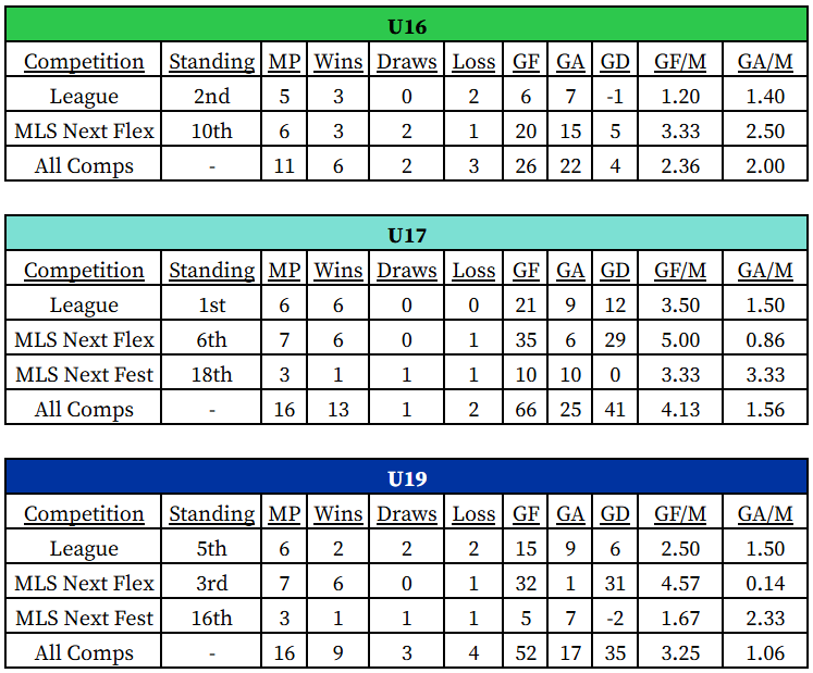 The U17 group in particular continued to showcase a potent offense where they put up 12 goals. That now brings them to 66 goals scored in 16 games played across all competitions.