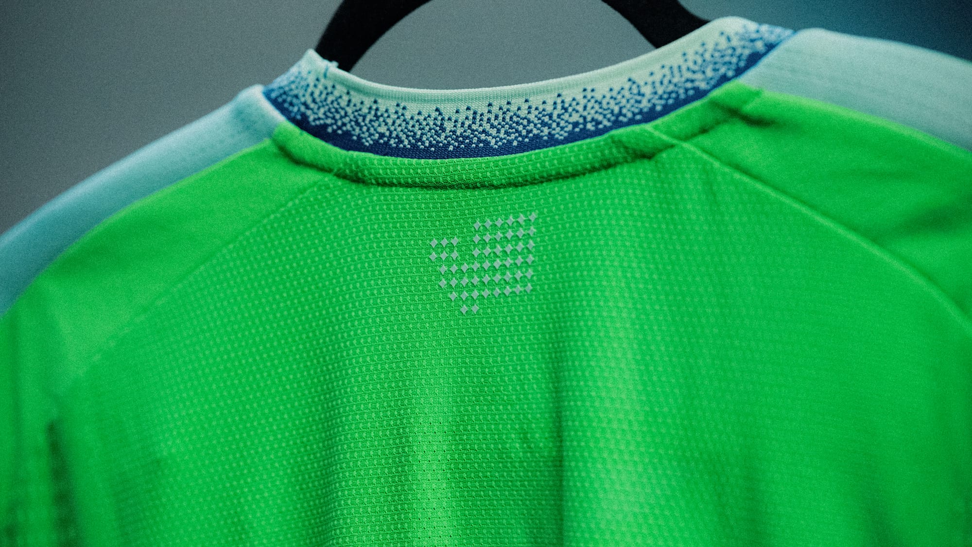 The jersey also features a jock tag bearing Washington State’s nickname, the inspiration behind the jersey’s name, “the Evergreen State.” The back of the neck features an outline of Washington state made up of 52 markings representing the club’s commitment through the RAVE Foundation to build 52 free-to-play mini-pitches across the state before the end of 2026.