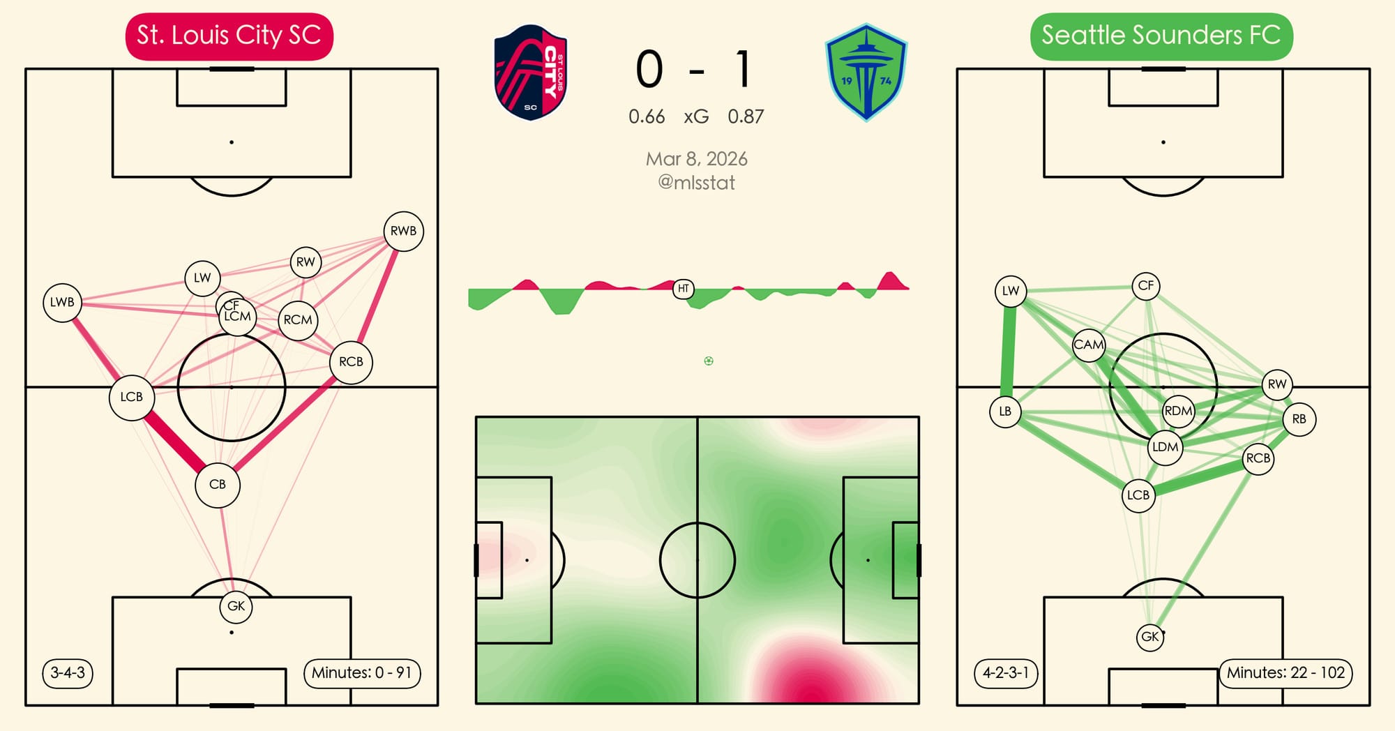 Kalani Kossa-Rienzi was a first-half injury replacement for Yeimar Gomez Andrade and scored the game-winning goal. St. Louis City dominated possession and field-tilt but ultimatetly weren't able to create much danger.